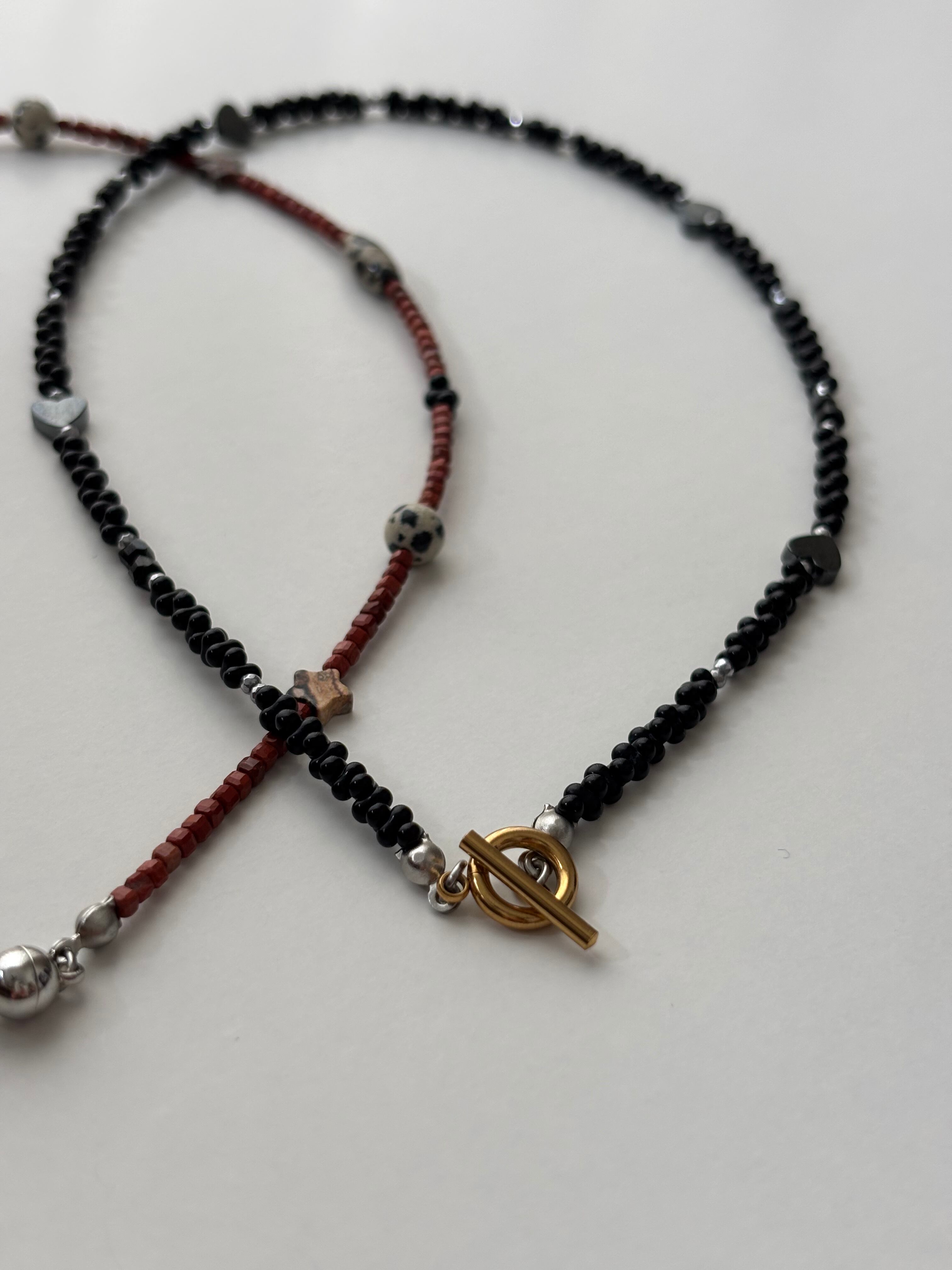 ブラックファルファーレに、ポイントとしてオニキスとハートヘマタイトを使用
