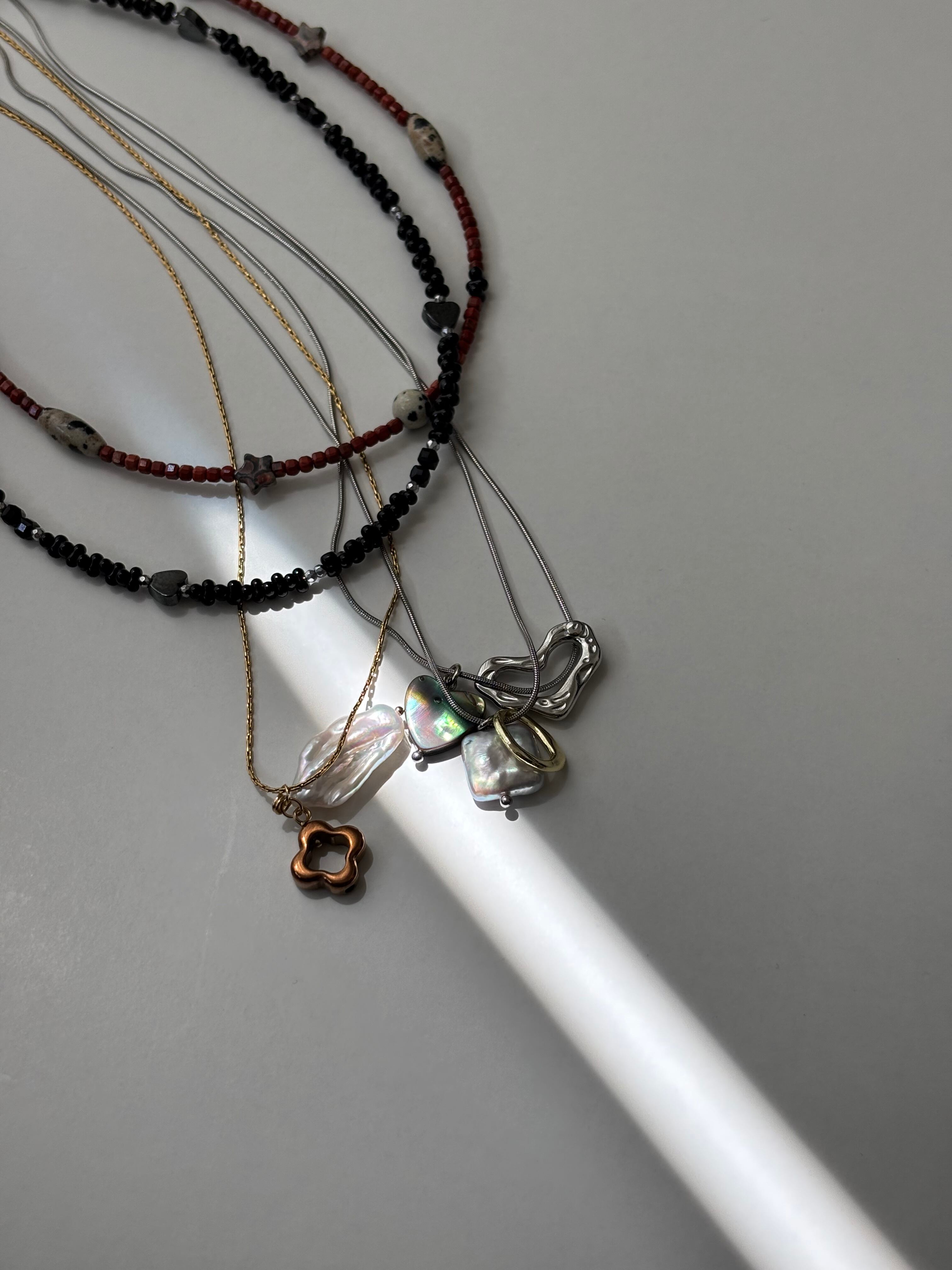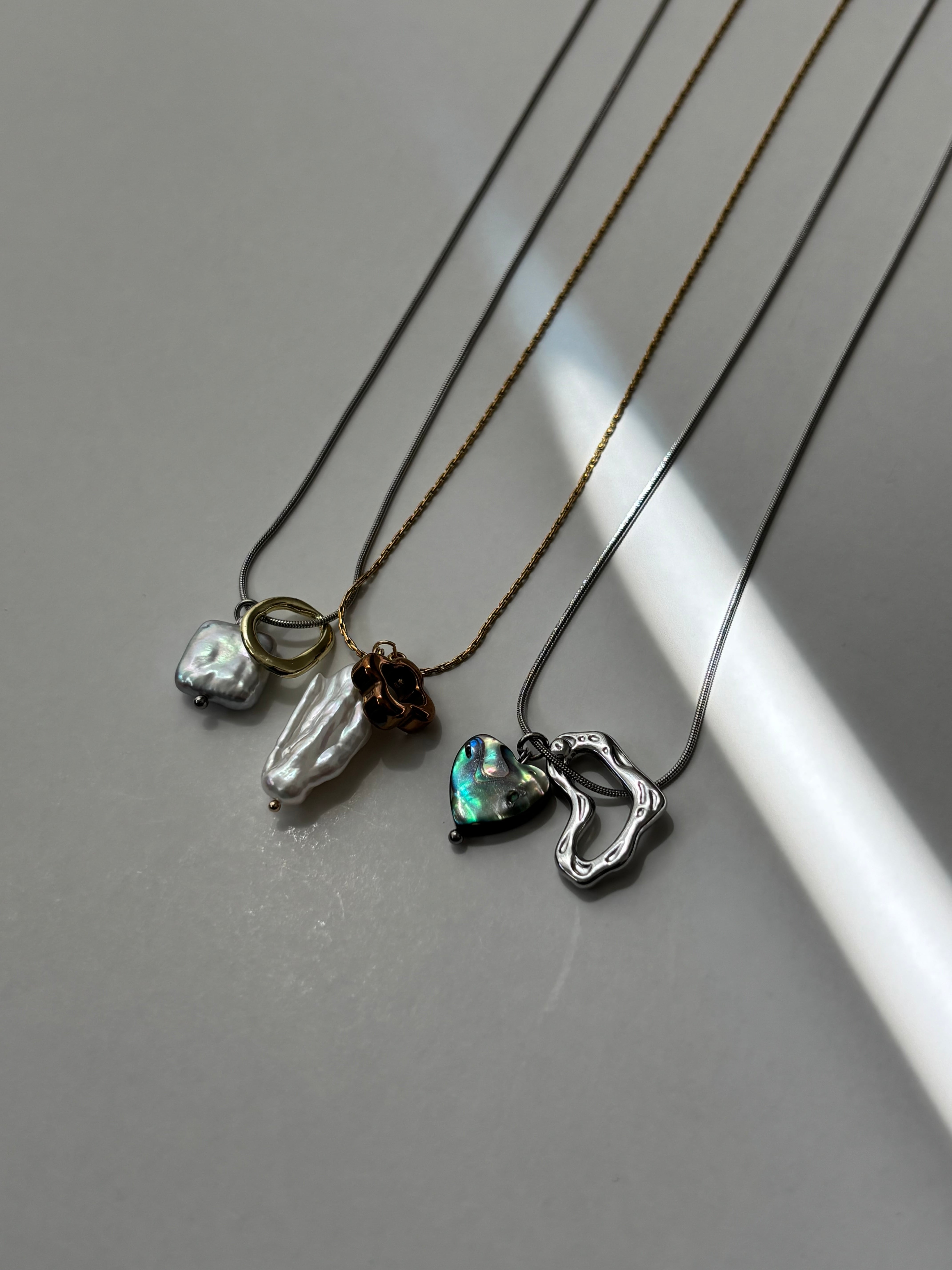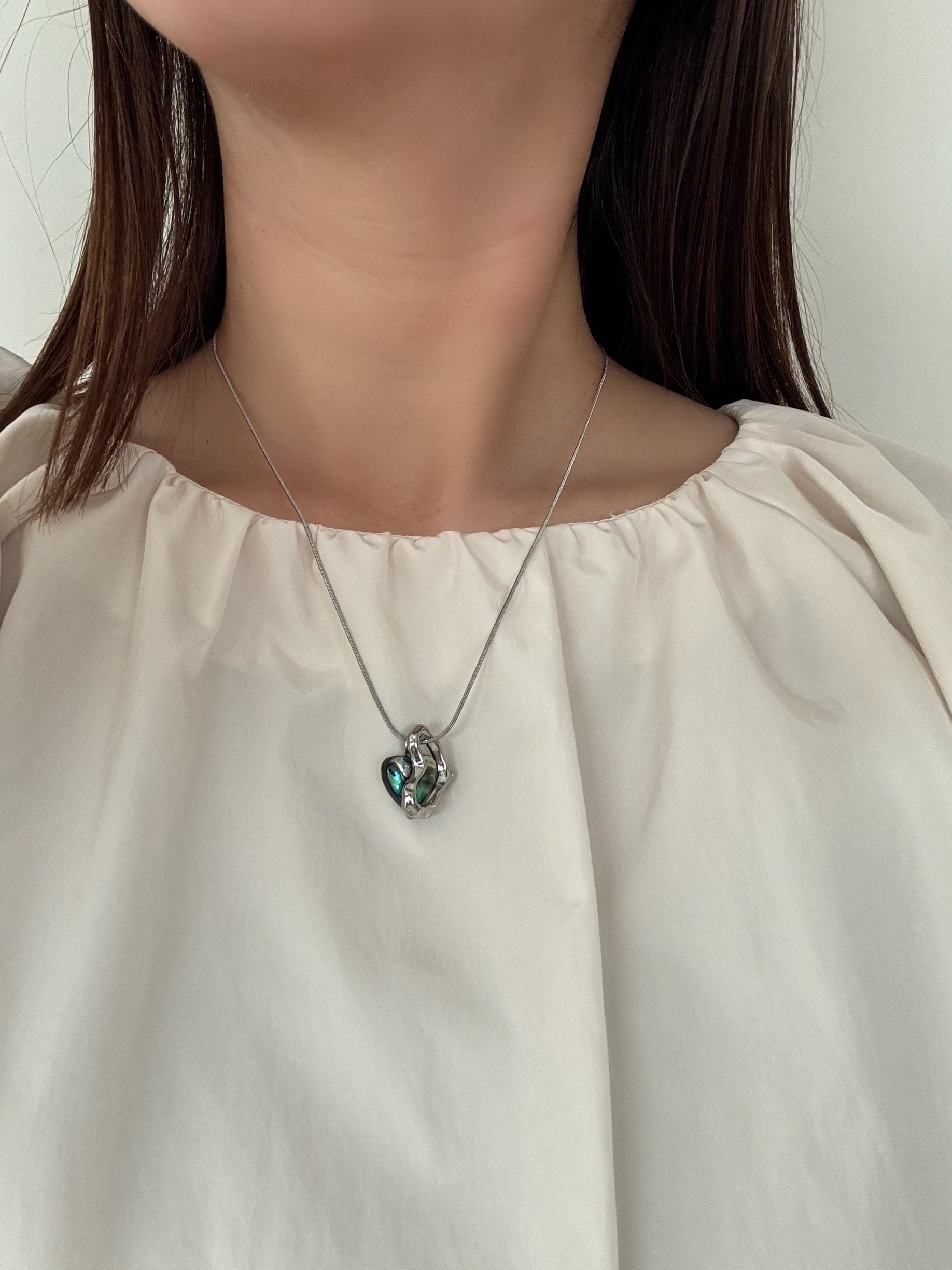 アバロンシェルを使用した、かわいらしいハート型のネックレスです☺︎